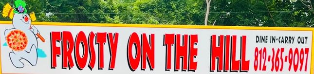 Frozen Banana split in half with Vanilla Ice- cream topped with Fudge, Strawberry, & pineapple with whipped cream and cherry on top